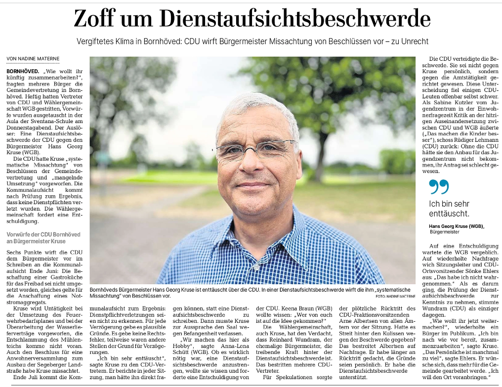 Dienstaufsichtsbe-schwerde gegen Bürgermeister Kruse wird zum Rohrkrepierer der CDU Bornhöved
